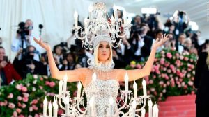 Katy Perry went as a life-sized chandelier with electric candles and dripping with crystals.